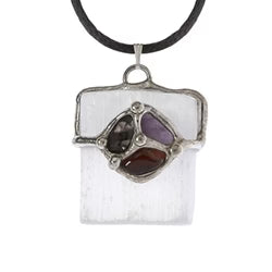 Selenite is a very soft crystal; it should be handled utmost with care. It should never be washed or placed in water because this can erode or damage its surface. Use Sage or moonlight if you wish to cleanse your amulet.