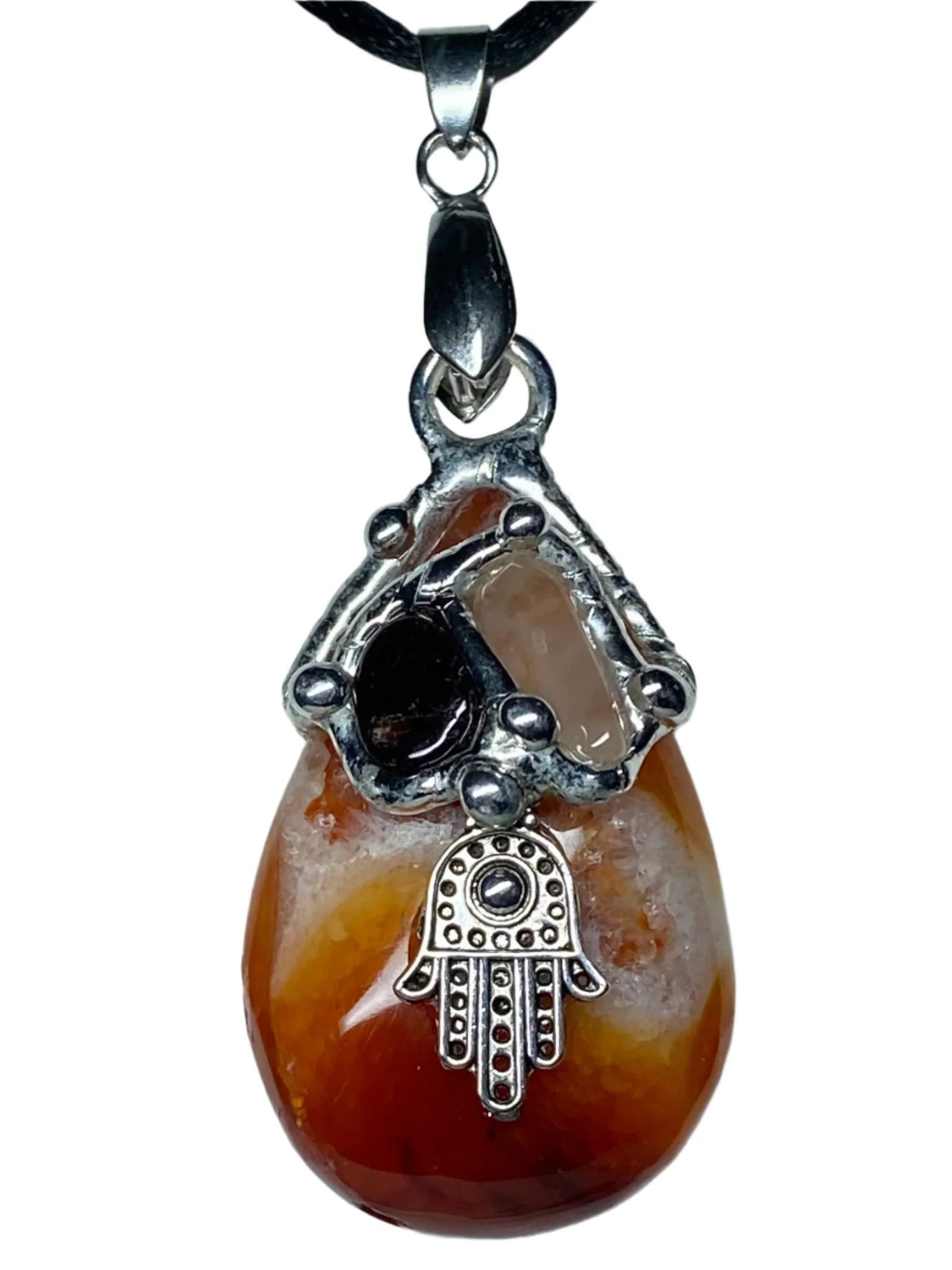 The combination of Garnet, Carnelian and Rose Quartz creates - balance within the self to bring harmony and growth. Garnet stimulates, revitalizes, and regenerates bodily systems.